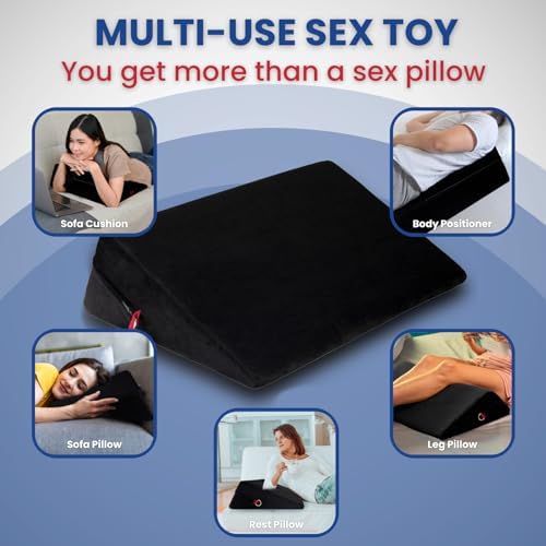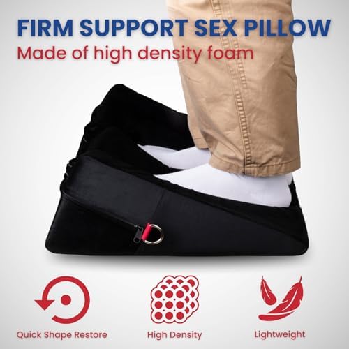 I have to share my excitement about the High Density Foam Sex Wedge Pillow with 2 BDSM Bondages!! It's a game-changer for anyone who is looking to amp up their intimate moments! Bought this one because it’s much cheaper and look decent. It turns out it’s very similar to the Liberator’s one.This sex pillow is a total win! The high-density foam not only supports my weight (around 150 lbs) when I place it under my hip like a champ but also takes our intimate positions to a whole new level of comfort. Seriously, it's like upgrading to first-class for your bedroom adventures. It really does help with penetrating the right spot.And guess what? It's not just about the support. The sex wedge pillow features two zipper layers – one is moisture-repellent, so no need to stress about spills, and the other is machine-washable soft velvet fabric. Talk about practical and easy to maintain!The packaging is fantastic, and they even throw in a 2-year warranty – peace of mind for the win! Unboxing it felt like Christmas morning, and the quality is top-notch. It's like they thought of everything to make sure you have the best experience possible.It also comes with two black and red BDSM bondages. They're there, they're adjustable, and they add a hint of excitement. But honestly, the star here is the pillow itself. And we love the color theme too! Black and red look gorgeous.If you're into exploring new dimensions of pleasure with sex furniture and sex toys, this sex pillow is a must-have. It's not just a pillow; it's an upgrade to your entire intimate experience. Trust me; you won't be disappointed!