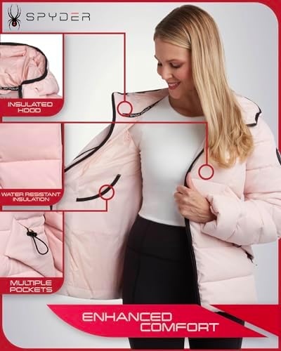 Spyder Women's Puffer Jacket - Water-Resistant Insulated Winter Coat with Cinched Waist - Womens Hooded Quilted Jacket (S-XL)