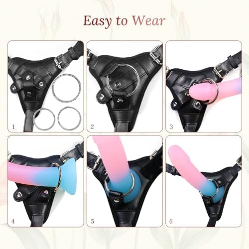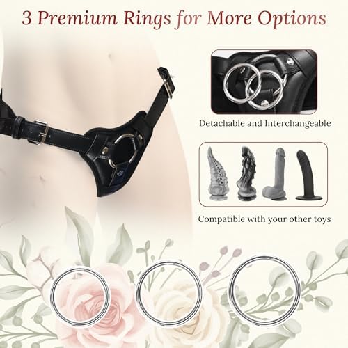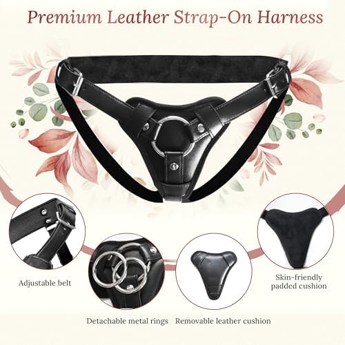 Strap On Harness Adult Sex Toys for Women and Men, Adjustable Plus Size Strapon Dildos Harness, Leather and Comfortable Plush Lining with Three Metal Rings, for Lesbian Gay Couples Pegging Dildo Play
