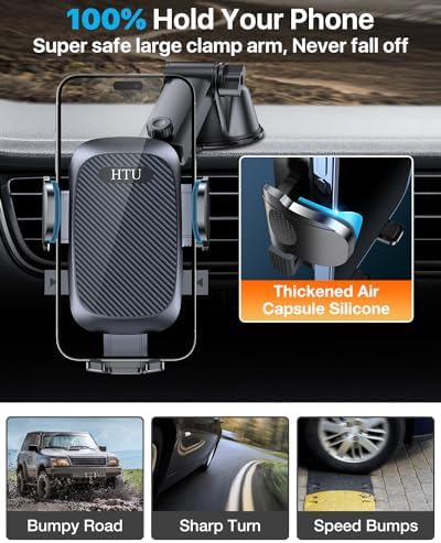 0.79" clamp arm depth with silicone airbag for stronger grip, better protection. The car phone holder mount.