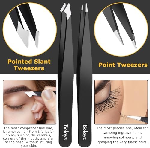 - Our set, featuring classic, slant, pointed, and pointed slant tweezers along with a versatile eyebrow brush, is designed to offer professional-level grooming for both men and women.