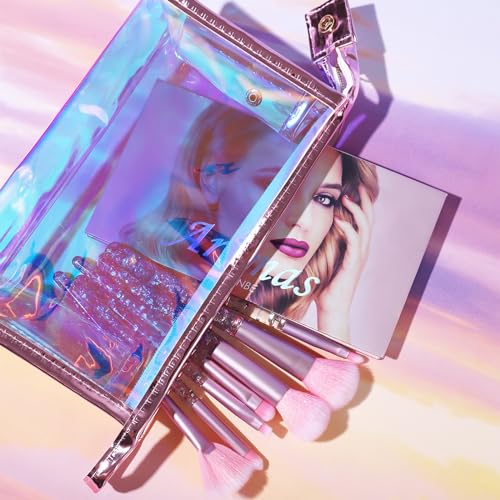 This pinky makeup kit for women full kit with 18 colors eyeshadow palette & 7 pcs/set brushes kit and laser pink cosmetic bag.