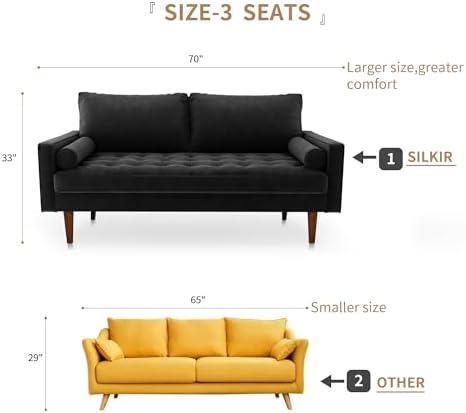 SILKIR Sofas for You---Artistic Elegance: Its premium velvet, sleek contours, and exquisite details create a visual centerpiece.---Long-lasting Durability: Engineered with premium materials and robust construction, our sofa guarantees enduring performance and unwavering reliability.Our factory works with designers of extraordinary versatility will provide personalized products which enables your home to fit your lifestyle, highlights the comfort and quality.SILKIR products will gradually fill your entire home space not only the soft, comfortable mattresses and pillows but also providing you with stylish and easy to assemble sofas and chairs.NOTE1. Please verify if the product dimensions meet your space requirements.2. Due to variations in displays or lighting, slight color discrepancies may occur.