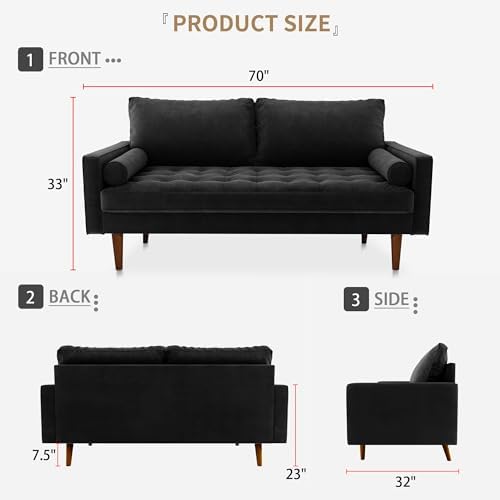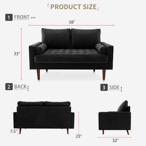 Velvet Furniture for Small Spaces, Mid-Century Modern Loveseats for Living Room, Love Seat Couch Sofas, 58 & 70 Inches, Black