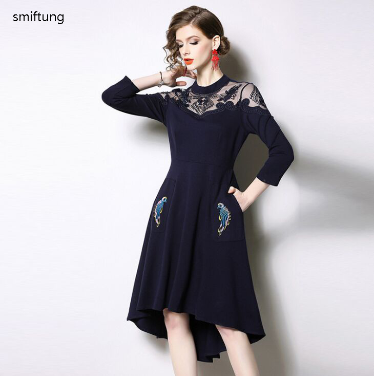 wholesmiftung Spring dress / Autumn casual dress / color blue / Three Quarter sleeve