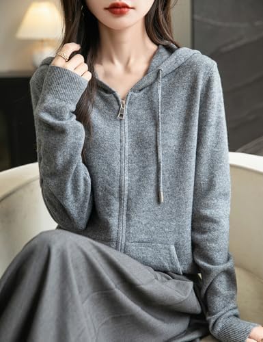 Women's 100% Merino Wool Zip Up Hoodies 2024 Fall Winter Warm Long Sleeve Knit Sweatshirt Cardigan with Pocket