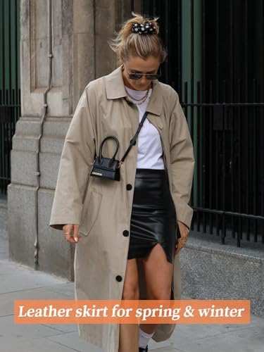 Women's Leather Skirt, Mini Bodycon Faux Pencil Sexy PU High Waist Zipper with Pocket